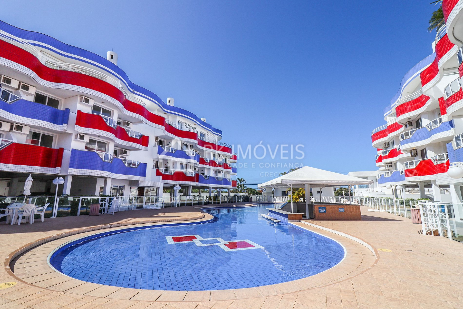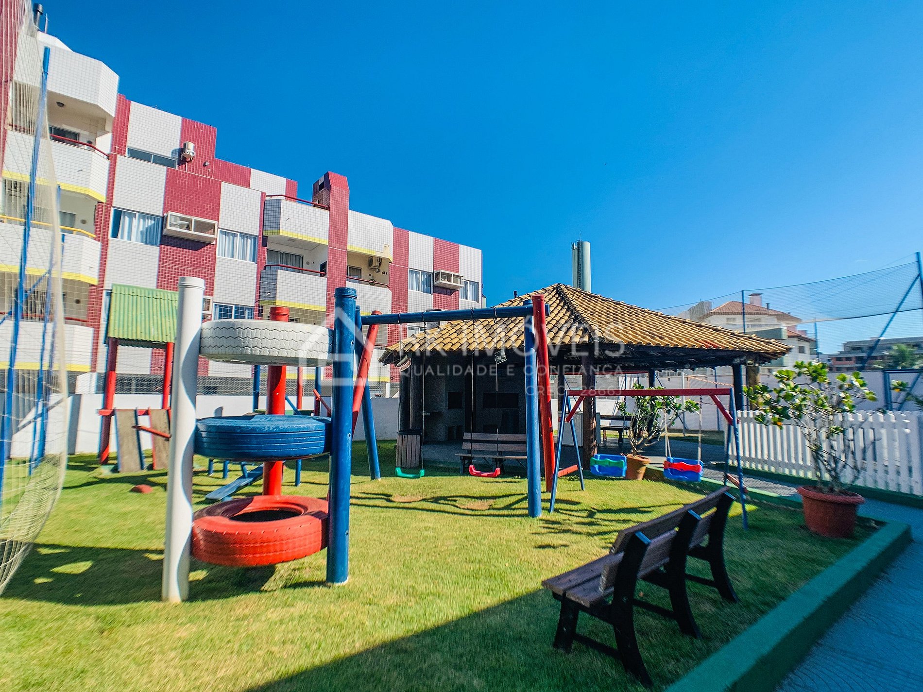 É um condomínio completo com ampla estrutura de lazer e no verão conta com recreação e serviço de praia.