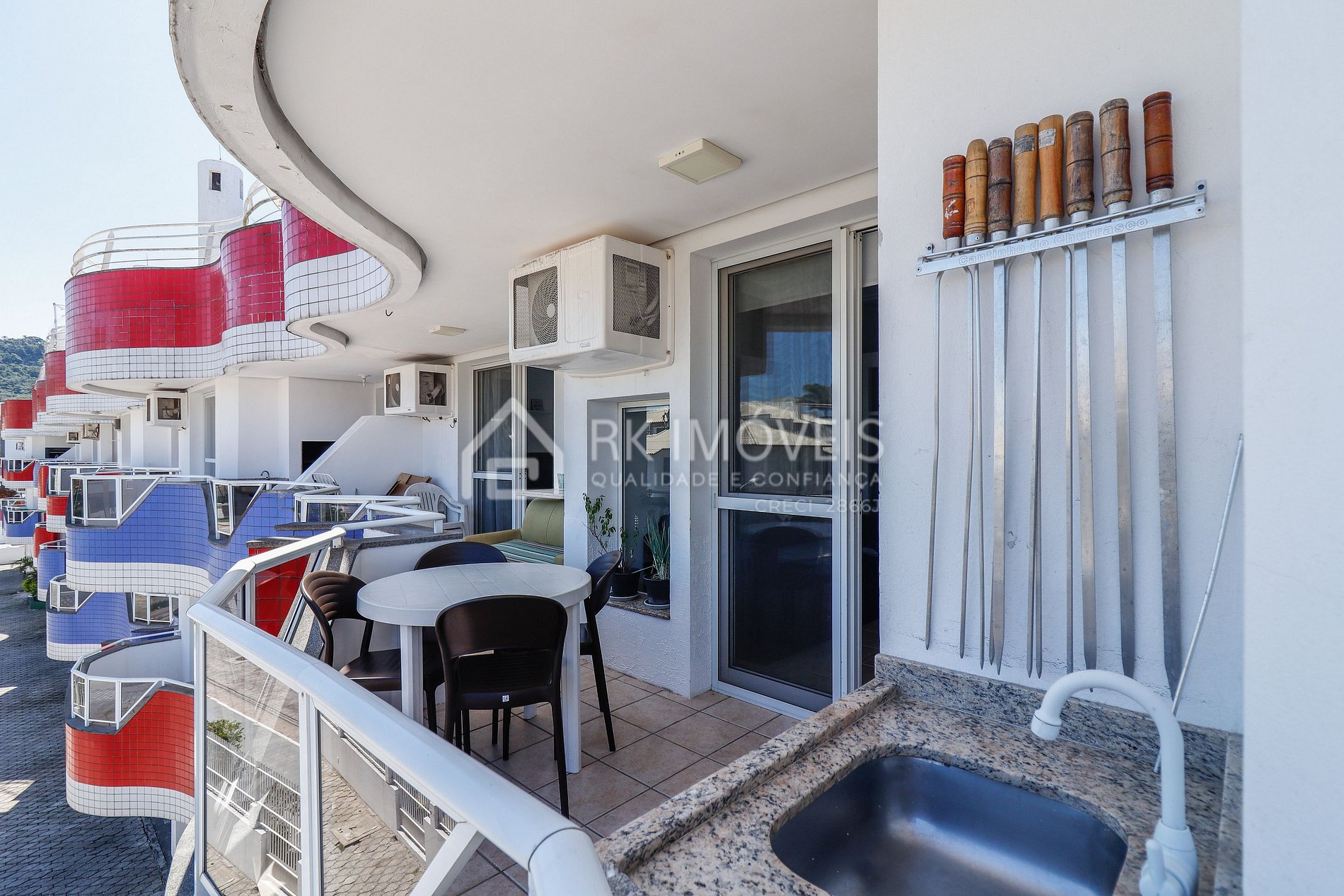 Apartamento Suíte Master - 1 dormitorio suite, 1 dormitorio con cama de solteiro todos con aire acondicionado, 2 salas con sofá cama cada uma, cocina americana completa, 1 banheiro y sacada con churrasqueira